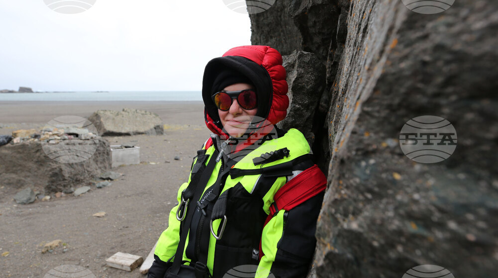 Ливърпул Бийч (20 януари 2024) Група от учени в състав: проф. Елиза Узунова (ихтиолог и хидро биолог), проф. Марк Ървайн (морски биолог), Калин Найденов (геолог), Тихомир Стефанов (ихтиолог), както и Марина Великова (на снимката), музиковед, акостираха на Ливърпул Бийч, където работиха по проектите си. Командирът на БАБ Камен Недков извози групата от БАБ на о. Ливингстън.