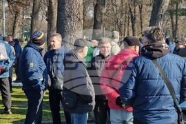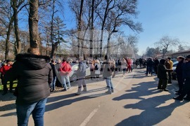 Скопие (22 януари 2024) Протест на превозвачи от публичния транспорт пред сградата на Столична Община Скопие.