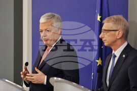 София (15 февруари 2024) В Министерски съвет се провежда брифинг след срещата на премиера с европейския комисар по правосъдие Дидие Рейндерс (на снимката).