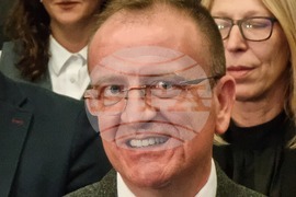 Скопие (16 февруари 2024) Политическата партия "Алианс за албанците", провежда извънреден конгрес в Хотел Александър Палас. На снимката: председателят на партията Арбен Таравари (трети отдясно).