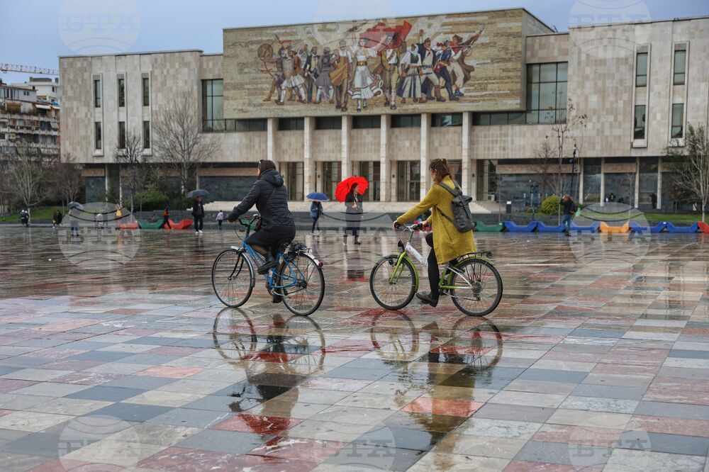 Тирана (25 февруари 2024) Ежедневие в центъра на столицата на Албания, Тирана.