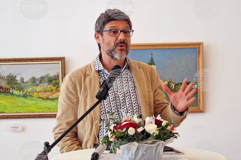 Одеса (3 март 2024) В сградата на генералното консулство на България в Одеса се провежда среща с представители на българската общност в Одеска област, организирана от генералния консул на България в Одеса Светослав Иванов и Националния пресклуб на БТА. Присъстват зам.-председателят на Народното събрание Росица Кирова, писателят Йордан Ефтимов (на снимката), представители на Столичния общински съвет, на Софийския университет, генералният директор на БТА Кирил Вълчев и група журналисти от БТА.