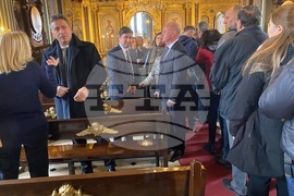 Истанбул (3 март 2024) Честване на националния празник на България - Трети март в Истанбул. На тържеството в българския метох, една от знаковите сгради на българското Възраждане от 1850 година, присъстваха генералният консул на България в Истанбул Васил Вълчев (вляво), представители от българската общност в Истанбул, представители на дипломатическата мисия на България в Истанбул, служители към Секретариата на Организацията за черноморско икономическо сътрудничество, аташетата по туризма и търговията. Гост на празника бе директорът на Дирекцията за международни отношения към голямата община на Истанбул Барбарос Бююксагнак.