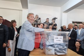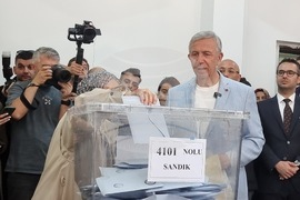 Анкара (31 март 2024) Кметът на Анкара и кандидат за нов мандат за поста на основната опозиционна Народнорепубликанска партия (НРП) Мансур Яваш (на снимката) гласува на местните избори. Яваш употреби правото си на глас в Религиозното училище „Юмиткьой“ в столицата. Той пристигна в училището заедно със съпругата си Нурсен Яваш и с много поддръжници на НРП, включително кандидатът за кмет на централната анкарска община Чанкая Хюсеин Джан Гюнер.
