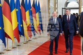Букурещ (6 април 2024) Пълното присъединяване на Румъния към Шенген дискутира румънският премиер Марчел Чолаку с германския канцлер Олаф Шолц, който е на посещение в Букурещ. Двамата се срещнаха в сградата на правителството на площад “Виктория“. Преди началото на разговорите германския канцлер подари на румънския премиер официалната топка на Европейско първенство по футбол, изработена по еко технология Adidas Connected Ball. Топката има име и се казва Fussballliebe, което означава “любов към футбола”.