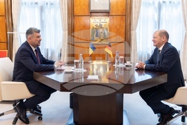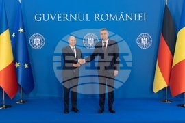 Букурещ (6 април 2024) Пълното присъединяване на Румъния към Шенген дискутира румънският премиер Марчел Чолаку с германския канцлер Олаф Шолц (вдясно), който е на посещение в Букурещ. Двамата се срещнаха в сградата на правителството на площад “Виктория“. Преди началото на разговорите германския канцлер подари на румънския премиер официалната топка на Европейско първенство по футбол, изработена по еко технология Adidas Connected Ball. Топката има име и се казва Fussballliebe, което означава “любов към футбола”.
