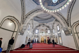 Скопие (10 април 2024) Вярващи мюсюлмани празнуват Рамазан Байрям, края на свещения месец Рамазан с молитви в джамията Гази Иса бей (бег) в Скопие.
