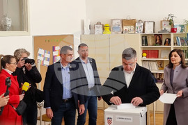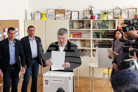 Загреб (17 април 2024) Хърватите избират днес нов парламент след една предизборна кампания, която бе белязана от острия сблъсък между президента социалдемократ и премиера от дясноцентристката Хърватска демократична общност (ХДО). На снимката: президент Зоран Миланович гласува на парламентарните избори.