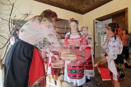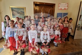 Букурещ (20 април 2024) Деца лазаруват в Посолството на България в Букурещ. Те са организирани от Асоциацията на българското малцинство в Извоареле „Български извори“ и представят хоро и ръченица, пеят песен за Свети Лазар,и показват как се лазарува. Посланикът на България в Румъния поздрави децата за изпълненията им и им благодари, а след това всички заедно си направиха обща снимка за спомен. Празникът продължи в Българското неделно училище „Йордан Йовков“ с урок по народни танци и с работилница „Великденски обичаи“.