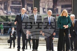 Порто (12 април 2022) На площад "Avenida dos Aliados" в Порто се състоя церемония по официалното посрещане на президента Румен Радев (ляво) от президента на Португалската република Марселo Ребелo де Соуза. Българският президент е придружаван от неговата съпруга Десислава Радева. След церемонията кметът на Порто Руи Морейра (втори отляво надясно) ги придружи до кметството.