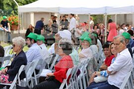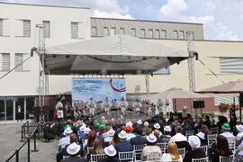 Двамата държавни глави откриха Българския културно-образователен център, изграден с подкрепата на българската и унгарската държава. В новата сграда се помещават образователните и културните институции и неправителствените организации на българската общност. На снимката: отец Танчо освещава сградата