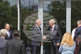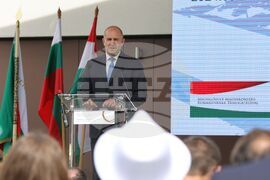 Двамата държавни глави откриха Българския културно-образователен център, изграден с подкрепата на българската и унгарската държава. В новата сграда се помещават образователните и културните институции и неправителствените организации на българската общност. На снимката (от ляво надясно): Председателят на Българското републиканско самоуправление в Унгария. д-р Данчо Мусев, президентът на България Румен Радев, президентът на Унгария Тамаш Шуйок.