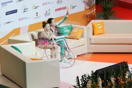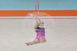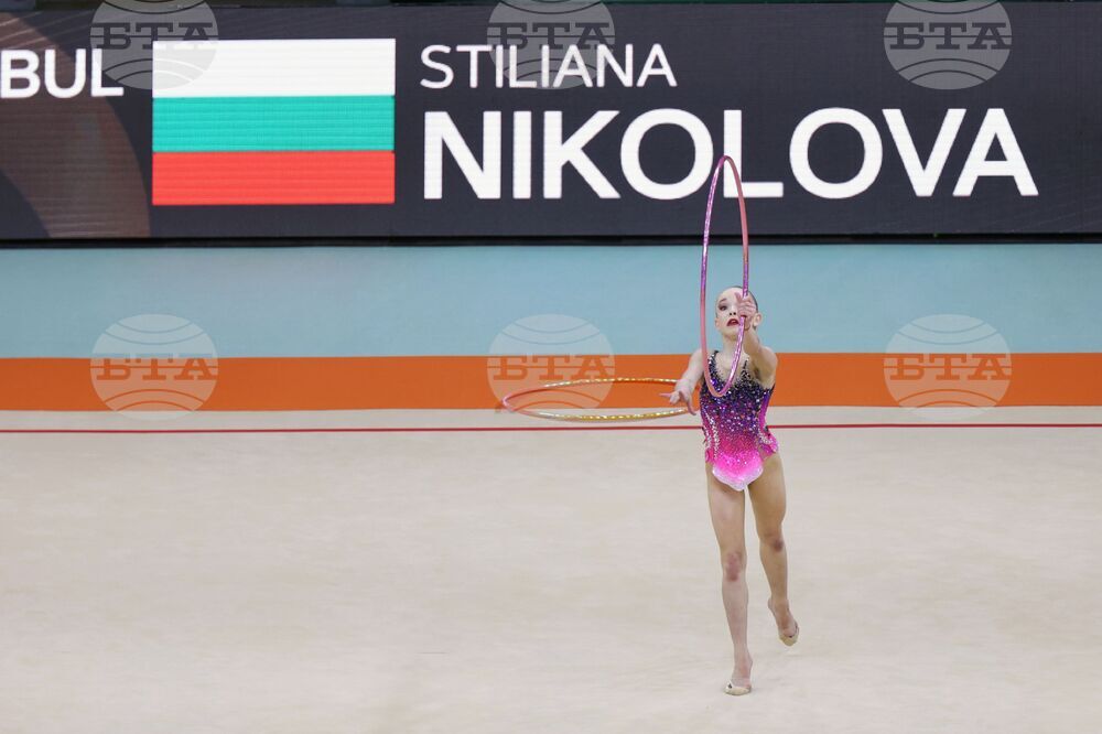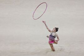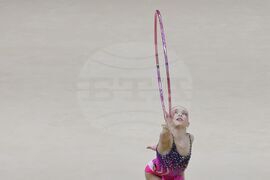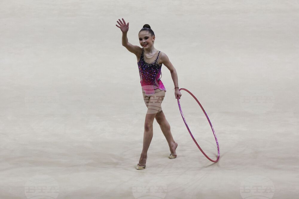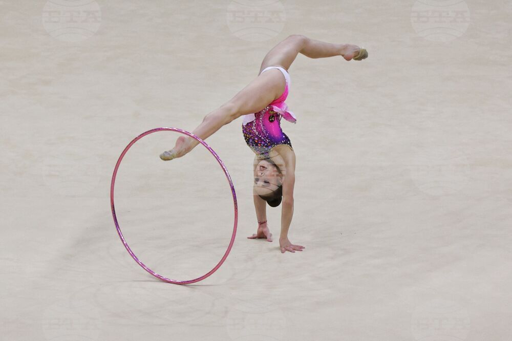 Будапеща (26 май 2024) В последния ден на Европейското първенство по художествена гимнастика в зала "Ласло Пап" се провеждат финалите на отделните уреди. На снимката: Стилияна Николова в съчетание с обръч.