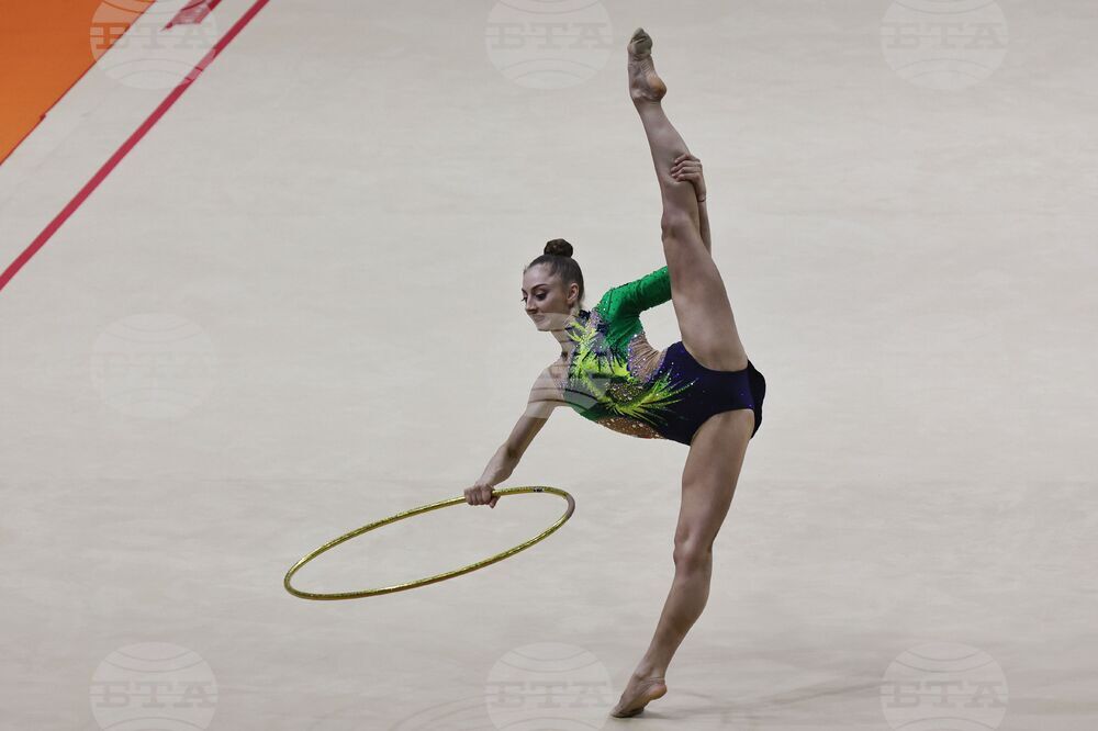 Будапеща (26 май 2024) В последния ден на Европейското първенство по художествена гимнастика в зала "Ласло Пап" се провеждат финалите на отделните уреди. На снимката: Боряна Калейн в съчетание с обръч.