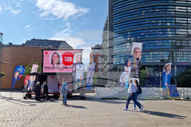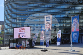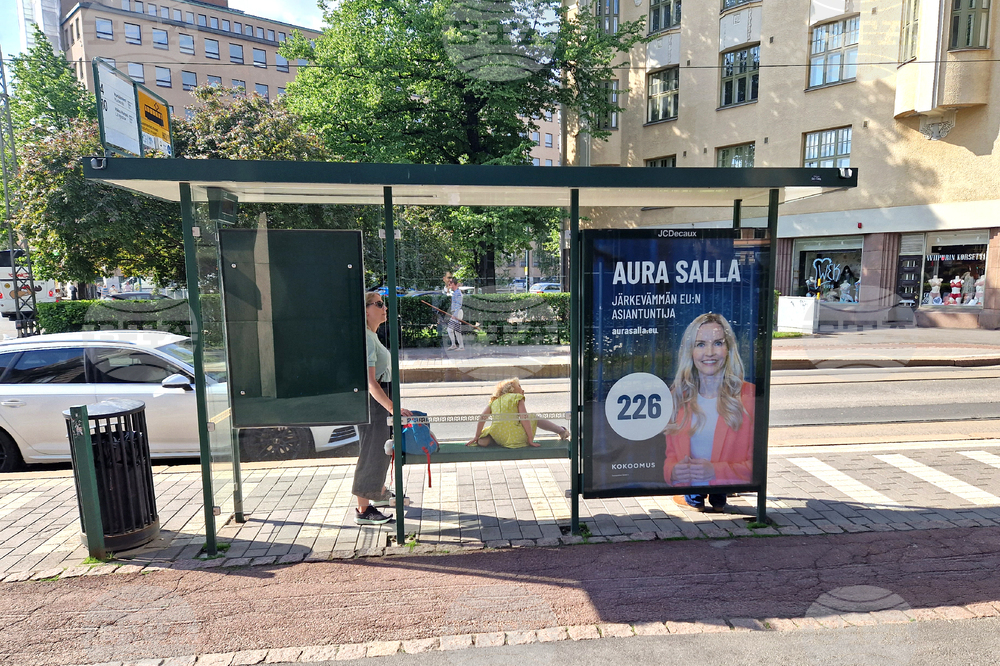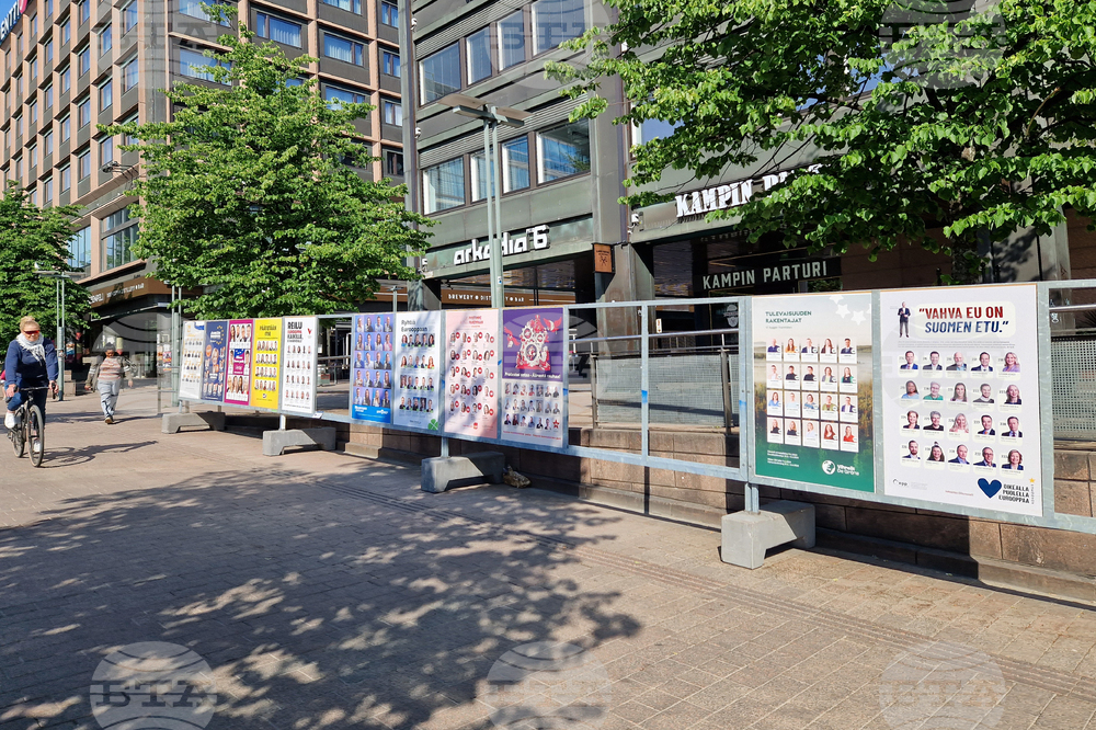 Хелзинки (7 юни 2024) Само два дни преди евровота по улиците на Хелзинки могат да се видят различни плакати и постери, от които кандидатите за евродепутати приканват хората да гласуват за тях.