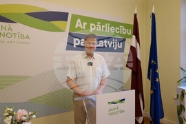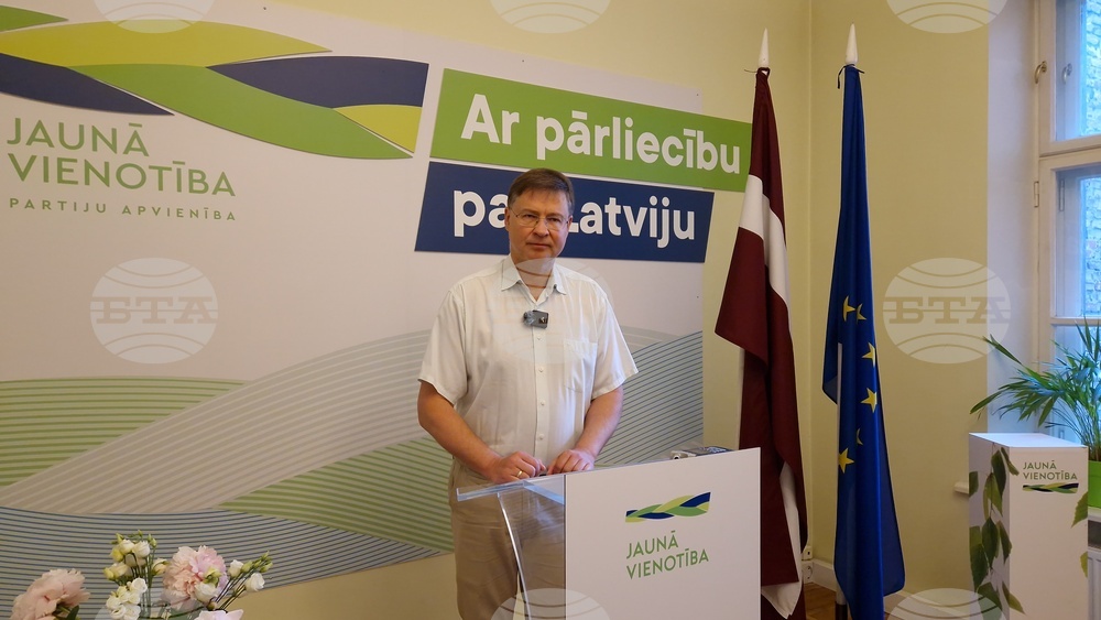 Рига (8 юни 2024) Централата на управляващата партия в Латвия "Ново единство". На снимката: изпълнителният заместник-председател на Европейската комисия и водач на кандидатската листа на латвийската партия "Ново единство" за настоящите избори за Европейски парламент Валдис Домбровскис.