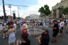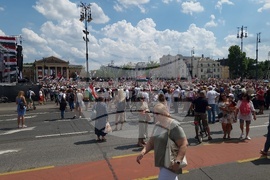 Будапеща (8 юни 2024) Десетки хиляди унгарци се стекоха в ранния следобед в събота, 8 юни 2024 г., на заключителния предизборен митинг на опозиционната партия ТИСА и харизматичния й лидер Петер Мадяр на Площада на героите в Будапеща.