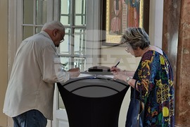 Букурещ (9 юни 2024) В деня на изборите за 50-о Народно събрание и за представители в Европейския парламент българите в Румъния гласуват в една избирателна секция. Тя е разположена в сградата на Посолството ни в Букурещ на ул. “Рабат” № 5. На снимката: Панайот Липов.