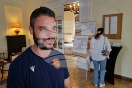 Букурещ (9 юни 2024) В деня на изборите за 50-о Народно събрание и за представители в Европейския парламент българите в Румъния гласуват в една избирателна секция. Тя е разположена в сградата на Посолството ни в Букурещ на ул. „Рабат“ № 5. На снимката: Николай Рибарски.