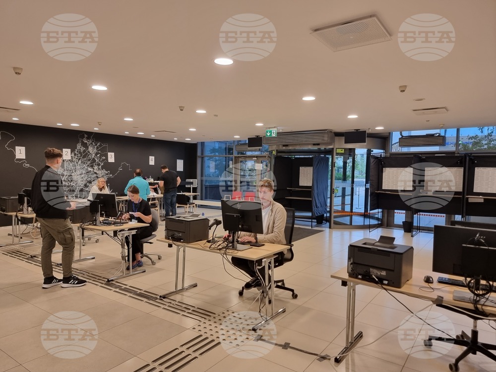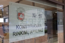 Вилнюс (9 юни 2024) Дъждът и лошото време не попречиха на избирателите във Вилнюс да упражнят от рано правото на глас на европейските избори в Литва. На снимката: избирателна секция в сградата на общината във Вилнюс.