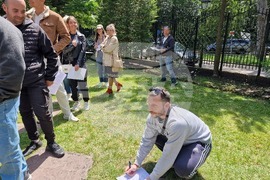 Хага (9 юни 2024) Българите в Нидерландия гласуват за Европарламент и Народно събрание в 24 секции, разположени в цялата страна. В 7 от тях има и машинно гласуване: едната е в Посолството в Хага, има две в Амстердам и по една Айндховен, Бреда, Ваалс и Ротердам. Пред секциите в Хага има опашки. Има хора, които предпочитат да изчакат, за да гласуват с машина. В Утрехт началото бе спокойно, като до 9,30 часа бяха гласували само членовете на секционната комисия в единствената избирателна секция в града. 761 българи са се регистрирали предварително за изборите за Европарламент в Нидерландия, а 778 – за Народно събрание. На снимката: опашка за гласуване в ранните следобедни часове пред Българското посолство в Хага.
