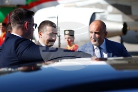 Подгорица (16 юни 2024) Президентът Румен Радев пристига на официално посещение в Черна гора. На снимката: официално посрещане на летище Подгорица от заместник-министър председателят по сигурността, вътрешните работи, европейските и външните отношения на Черна гора Алекса Бечич (в средата).