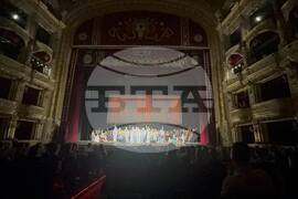 Одеса (19 юни 2024) Деветнадесетата Световна среща на българските медии, организирана от Българската телеграфна агенция (БТА), се провежда между 18 и 21 юни в три града в Украйна - Одеса, Болград и Измаил, където има големи български общности. Темата на тазгодишното издание на срещата е „Медии и общност“, а събитието се провежда в хибриден формат - на място и чрез онлайн видеовръзка. Участват журналисти от 14 държави, включително България. Общо 23 журналисти от 18 българоезични медии по света и представители на 13 медии от България. Участниците в деветнадесета среща на българските медии посещават Одеския национален академичен театър за опера и балет. На снимката (от ляво надясно): заместник генералният директор на БТА Евгения Друмева, генералният консул на България в Одеса Светослав Иванов, генералният директор на БТА Кирил Вълчев, генералният директор на БНР Милен Митев, председателят на Съвета за електронни медии Габриела Наплатанова, главният редактор на електронното издание „БГ Фактор“, Кипър Живка Милова, ректорът на Софийския университет "Св. Климент Охридски" проф. Георги Вълчев.