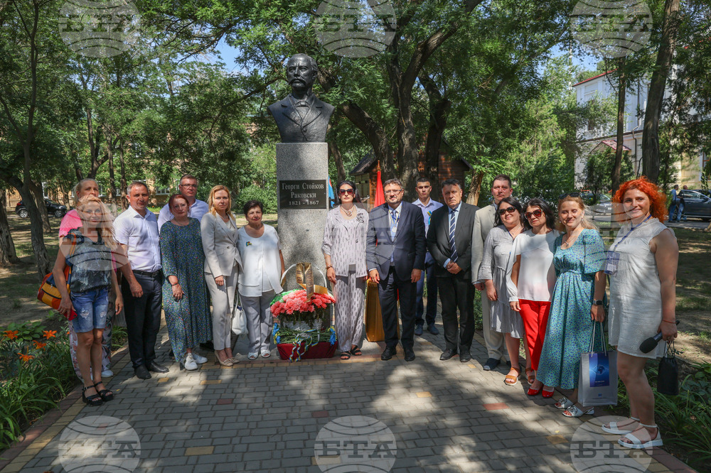 Болград (20 юни 2024) Участниците в Деветнадесета световна среща на българските медии поднасят цветя на паметника на Георги Стойков Раковски в двора на Болградската гимназия „Г. С. Раковски“. На събитието присъстват: генералният директор на БТА Кирил Вълчев, председателят на Съвета за електронни медии Габриела Наплатанова, ректорът на Софийския университет "Св. Климент Охридски" проф. Георги Вълчев, генералният директор на БНР Милен Митев, изпълнителният директор на Изпълнителната агенция за българите в чужбина, България Райна Манджукова, кметът на Болград Сергей Дмитриев.