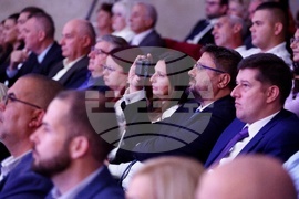 Цариброд (21 септември 2024) С богата програма от събития населената предимно с етнически българи община Цариброд (Димитровград) в Сърбия отбелязва празника си. Тържественото заседание на Общинския съвет, на което присъстват много граждани, е централното събитие днес, когато тук се почита Рождество Богородично по стар стил. На снимката: кметът на община Цариброд Владица Димитров (вляво, на преден план).