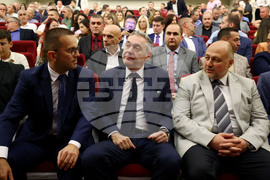 Цариброд (21 септември 2024) С богата програма от събития населената предимно с етнически българи община Цариброд (Димитровград) в Сърбия отбелязва празника си. Тържественото заседание на Общинския съвет, на което присъстват много граждани, е централното събитие днес, когато тук се почита Рождество Богородично по стар стил. На снимката (от ляво надясно, на преден план): председателят на Общинския съвет на Община Цариброд Зоран Джуров, посланикът на България в Сърбия Петко Дойков и генералният консул в Ниш Димитър Цанев.