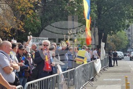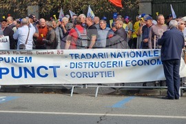 Букурещ (26 септември 2024) Около 200 души от Федерацията на синдикатите на железопътните превозвачи от Румъния се събраха на протестен митинг пред сградата на Министерството на труда и социалната солидарност в Букурещ. Недоволните развяваха знаме на Румъния с дупка по средата (символ на румънската революция) и плакати с надпис “Долу правителството” и “Слагаме точка на националните предателсвта, на разрушаването на икономиката, на корупцията”, “Това сме ние и се борим и за вас”.