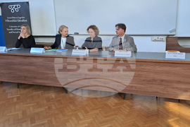 Загреб (27 септември 2024) За да се насърчи изучаването на чужди езици във всички възрасти, извън и в училище, както и с цел запазване на богатото европейското езиково и културно многообразие, по инициатива на Съвета на Европа и в сътрудничество с Европейската комисия всяка година, от 2001 г., на 26 септември се отбелязва Европейски ден на езиците. По този повод днес в сградата на Философския факултет в Загреб започна „Фестивал на езиците“. На снимката (от ляво надясно): главният секретар на Министерството на науката, образованието и младежта Зринка Мужинич Бикич, ръководителят на Представителството на Европейската комисия в Хърватия Зринка Уевич, министърът на културата и медиите Нина Обулен-Коржинек, заместник-деканът на Философския факултет към Загребския университет проф. д-р Хървое Станчич.