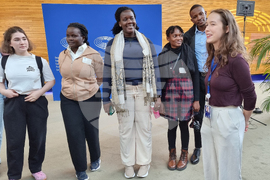 Страсбург (23 октомври 2024) Двадесет и три годишната австрийка Лена Шилинг, която бе избрана през юни за евродепутат от групата на Зелените, доведе на пленарната сесия на Европейския парламент в Страсбурт млади активисти за климата от Уганда. Днес те провеждат фотоакция в кулоарите на институцията във френския град. Групата от 12 души развява плакати с надпис „Накарайте замърсителите да плащат” и „Адаптиране на финансирането сега” и скандираше „Обединени никога няма да бъдем победени”.