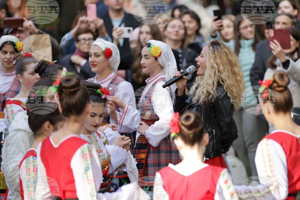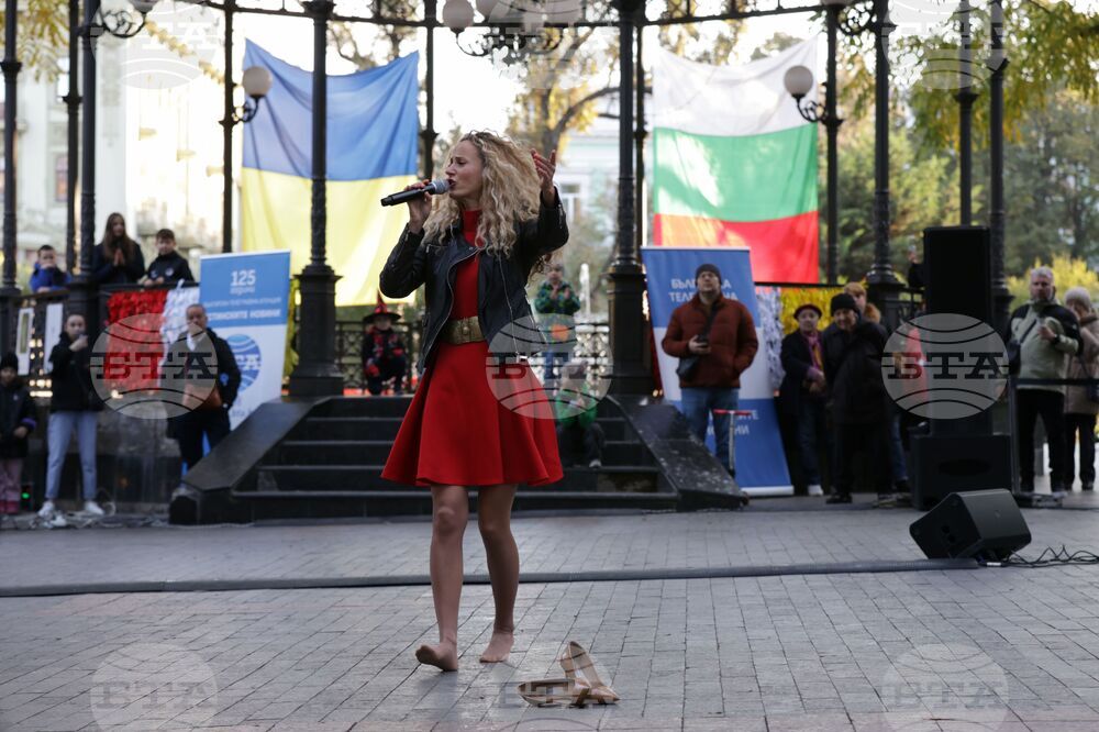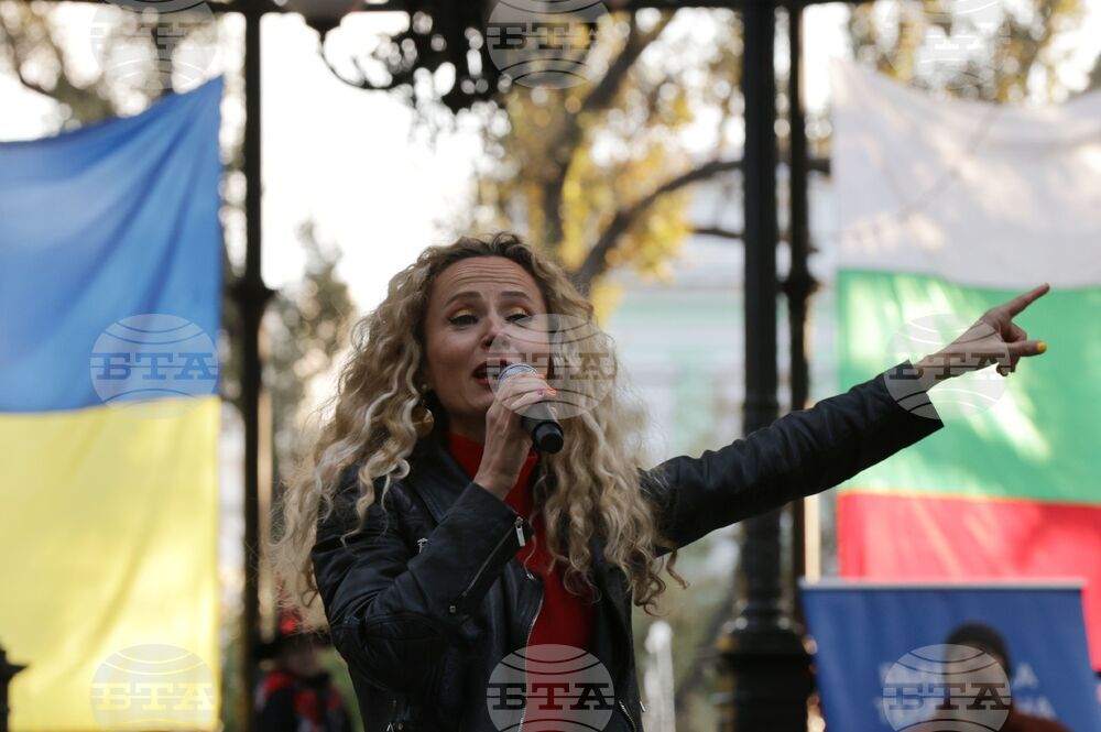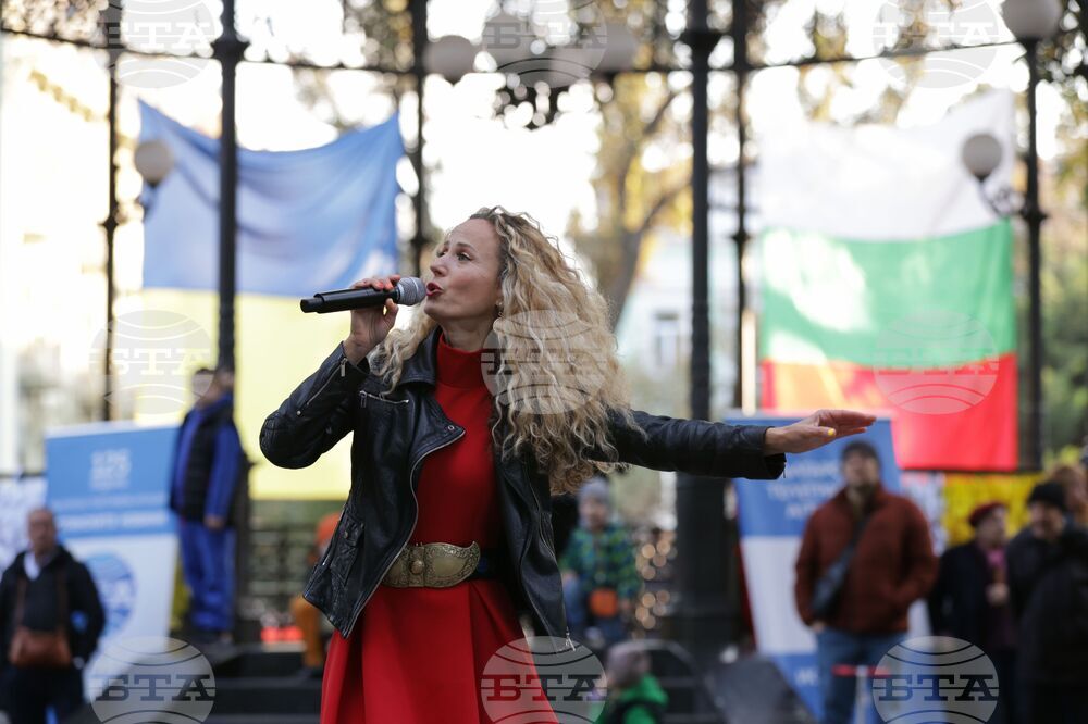 Одеса (26 октомври 2024) Генералното консулство на Република България в Одеса и Националният Пресклуб на Българската телеграфна агенция в Одеса организират празник за Деня на бесарабските българи - 29 октомври. При Ротондата на гpaдcкaтa гpaдuнa се провежда концерт на Деси Добрева и танцьорите от три български танцови състава от бесарабските села Камчик, Кулевча и Делжилер. На снимката: певицата Деси Добрева (в средата).