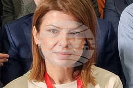 Скопие (24 ноември 2024) Конгрес на опозиционния СДСМ (Социалдемократически съюз на Македония), на който се очаква да бъде избрано ново ръководство на партията. Събитието се провежда в хотел "Александър Палас" в Скопие, Северна Македония. На снимката: Фани Каранфилова-Пановска.