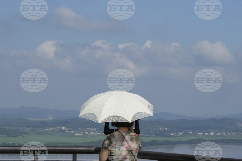 Visitors watch North Korean side from the Unification Observation in Paju, South Korea, near the border with North Korea, Sunday, Aug. 10, 2025. (AP Photo/Ahn Young-joon)