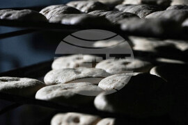 Baker Juan de Dios Castillo gives an interview while baking "pan de batalla," or battle bread, made with government subsidized flour, in El Alto, Bolivia, Friday, Aug. 8, 2025. (AP Photo/Juan Karita)