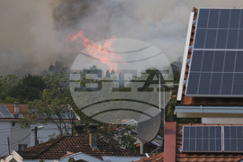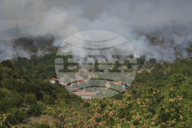 Smoke and flames rise from trees burning in a wildfire near Montenegro's capital of Podgorica, Monday, Aug. 11, 2025. (AP Photo/Risto Bozovic)
