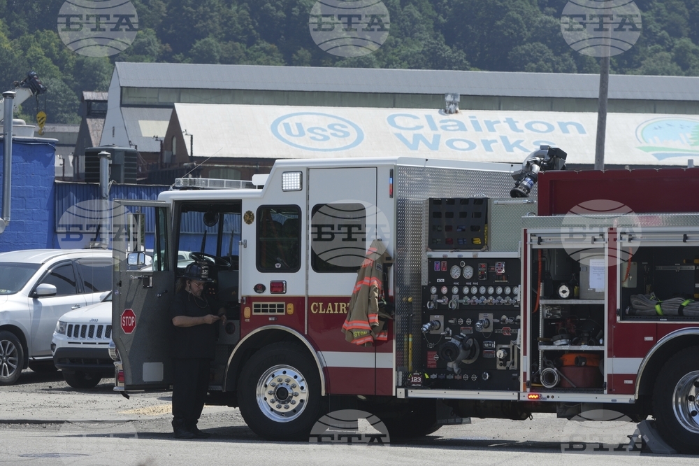Emergency crew gather after an explosion at the Clairton Coke Works, a U.S. Steel coking plant, Monday, Aug 11, 2025, in Clairton, Penn. (AP Photo/Gene Puskar)