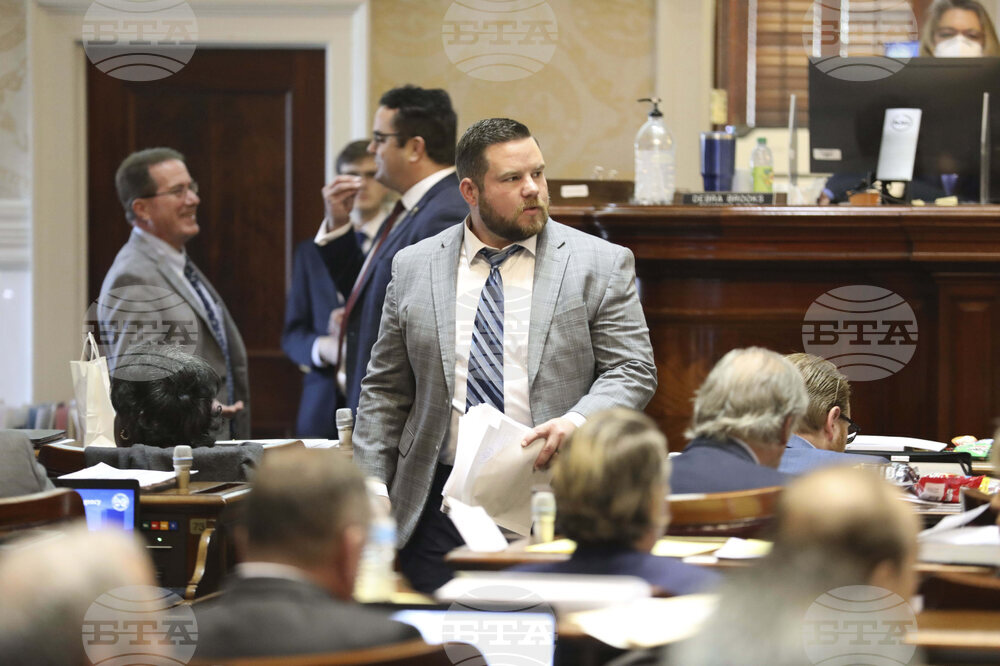 FILE - South Carolina Rep. RJ May, R-West Columbia, walks down the aisle of the House, Tuesday, March 14, 2023, in Columbia, S.C. (AP Photo/Jeffrey Collins, File)