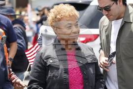 FILE - Oakland Mayor Barbara Lee speaks to the crowd at Wilma Chan Park before they march through downtown during a "No Kings" protest, June 14, 2025, in Oakland, Calif. (Jessica Christian/San Francisco Chronicle via AP, File)