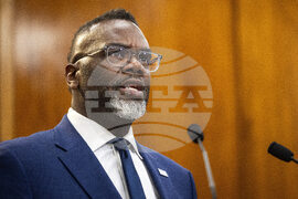 FILE - Baltimore Mayor Brandon Scott, center, speaks during a news conference outside of the Baltimore City District Court after a shooting, Jan. 31, 2025, in Baltimore. (AP Photo/Stephanie Scarbrough, File)