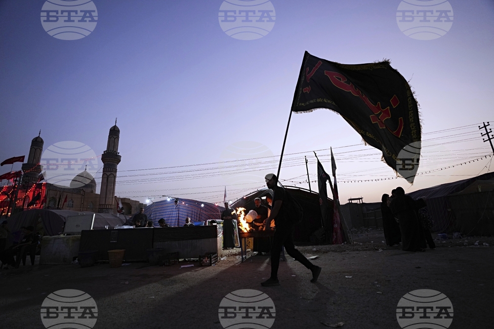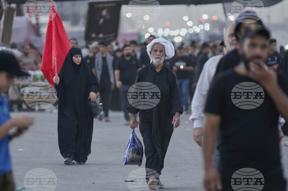 Shiite pilgrims march to Karbala, to observe Arbaeen that marks the end of a 40-day mourning period following the Day of Ashura, in Baghdad, Iraq, Tuesday, Aug. 12, 2025. (AP Photo/Hadi Mizban)