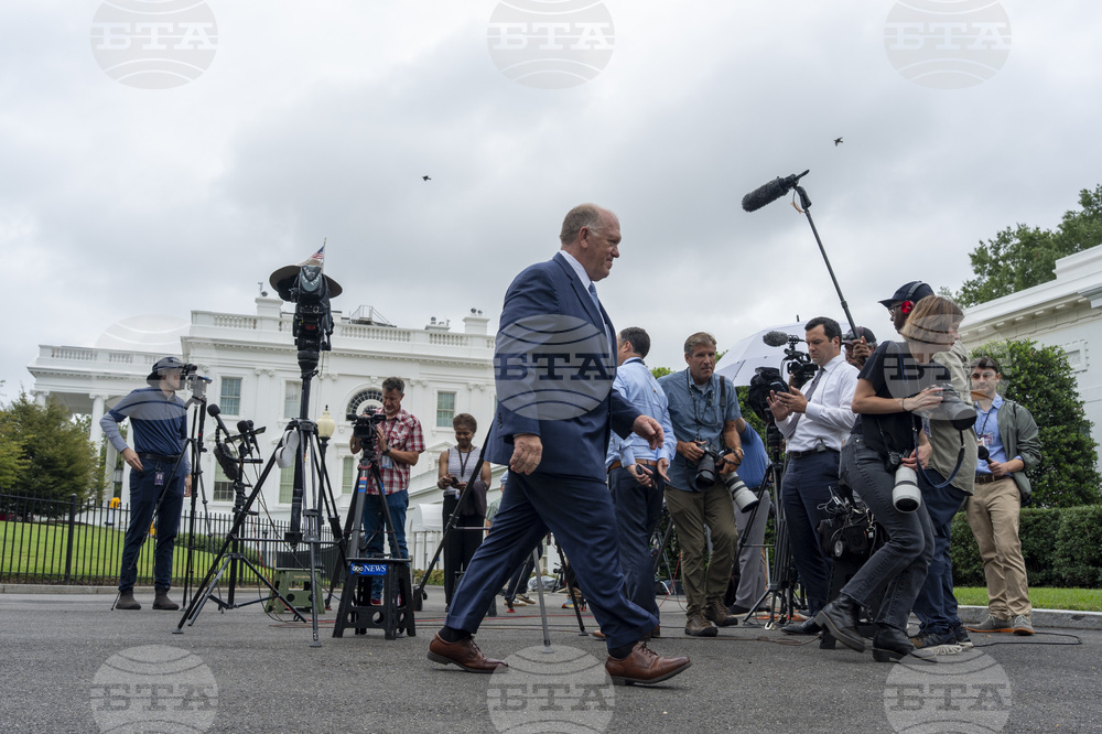 White House border czar Tom Homan departs after speaking with reporters at the White House, Wednesday, Aug. 13, 2025, in Washington. (AP Photo/Alex Brandon)