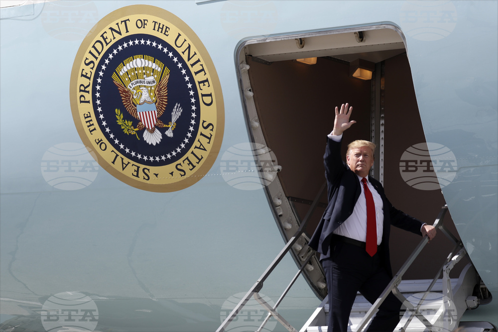 FILE - President Donald Trump waves after greeting troops at Joint Base Elmendorf-Richardson for a refueling stop en route to Japan, May 24, 2019, in Anchorage. (AP Photo/Evan Vucci, File)