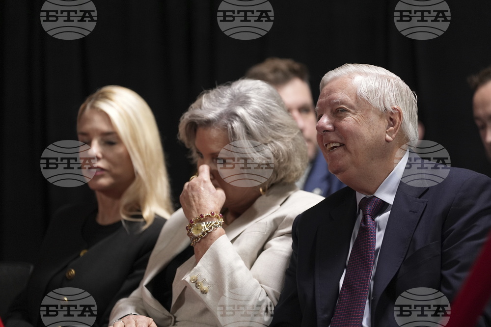 Attorney General Pam Bondi, White House Chief of Statff Susie Wiles and Sen. Lindsey Graham, R-S.C., look on before President Donald Trump begins to speak at the Kennedy Center, Wednesday, Aug. 13, 2025, in Washington. (AP Photo/Alex Brandon)