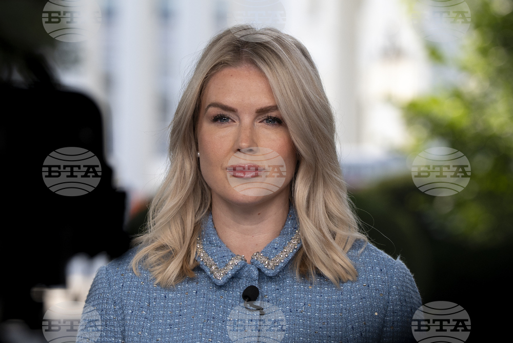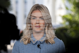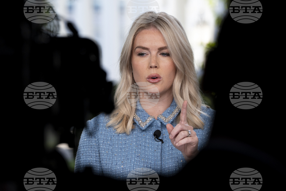 White House press secretary Karoline Leavitt prepares to do a television interview at the White House, Thursday, Aug. 14, 2025, in Washington. (AP Photo/Alex Brandon)