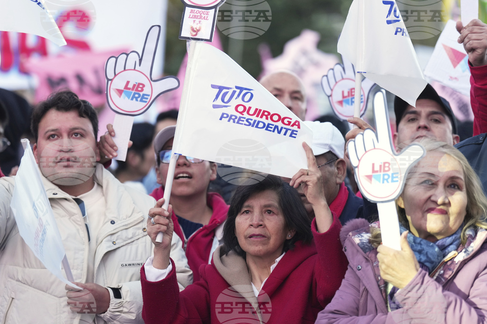 Supporters of presidential candidate Jorge "Tuto" Quiroga attend his closing campaign rally in La Paz, Bolivia, Wednesday, Aug. 13, 2025. (AP Photo/Natacha Pisarenko)