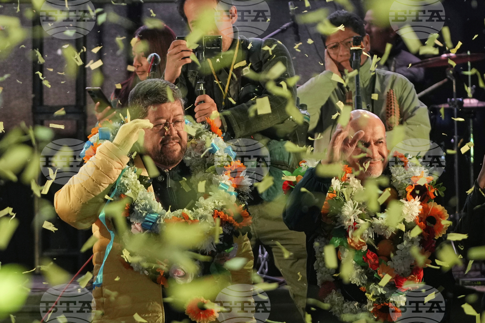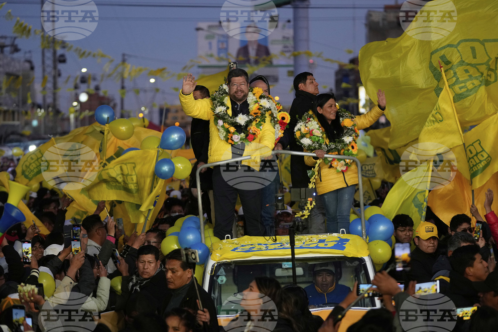 Presidential candidate Samuel Doria Medina, left, and running mate Jose Luis Lupo attend their closing campaign rally in El Alto, Bolivia, Wednesday, Aug. 13, 2025. (AP Photo/Juan Karita)