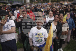 Mourners gather outside the cathedral in Bogota, Colombia, Wednesday, Aug. 13, 2025, during the funeral service for presidential hopeful and opposition Sen. Miguel Uribe, who died from wounds suffered when he was shot at a political rally. (AP Photo/Ivan Valencia)